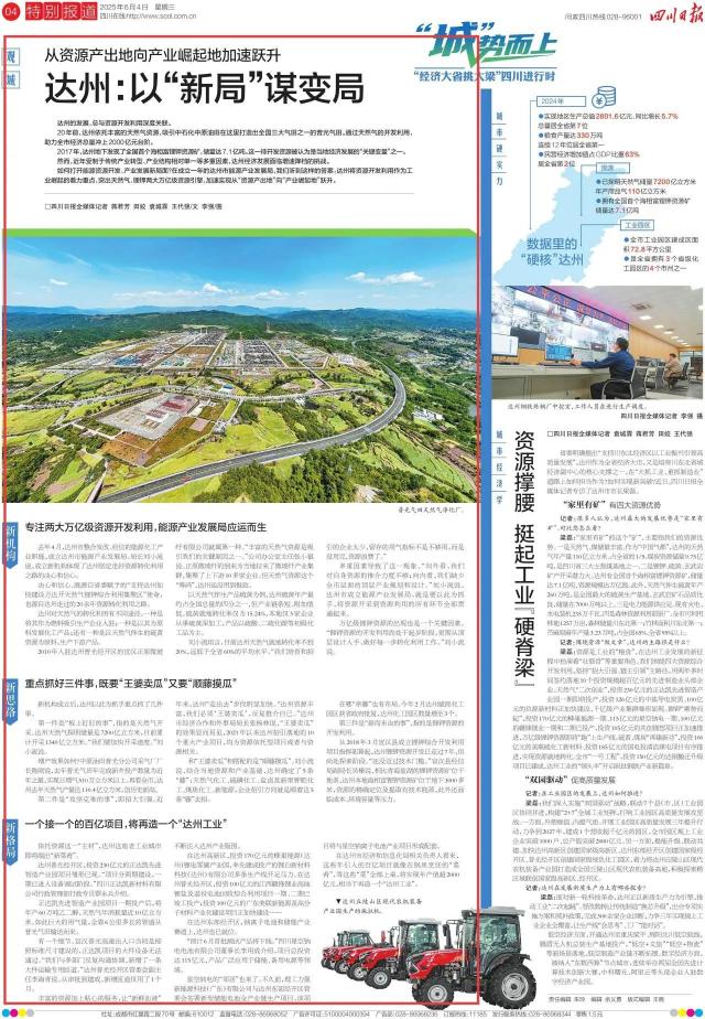 如何打开能源资源开发、产业发展新局面?在成立一年的达州市能源产业发展局,我们听到这样的答案:达州将资源开发利用作为工业崛起的着力重点,突出天然气、锂钾两大万亿级资源引擎,加速实现从“资源产出地”向“产业崛起地”跃升。