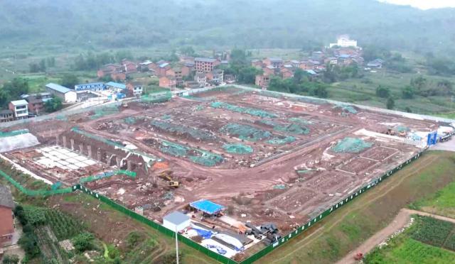 走进四川腾盾无人机总装生产基地及飞行运营服务基地项目建设现场,工人们正在进行绑扎钢筋、制作安装木模板等工作,挖掘机、装载机等机械设备正在开展室外道路平整。