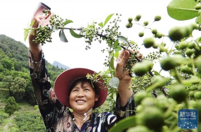 6月27日,在四川达州高新区幺塘乡后河村,椒农采摘花椒。