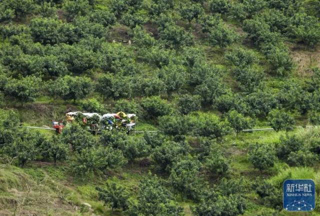 6月27日,在四川达州高新区幺塘乡后河村,满载花椒的无人驾驶“智能小火车”行驶在花椒林中。