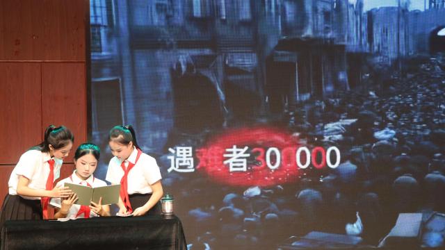 活动现场播放了《南京大屠杀》历史影像片段,并通过情景朗诵生动再现了《南京照相馆》中平民冒死保存日军罪证的英勇事迹,鼓励师生以史为鉴、笃行不怠。