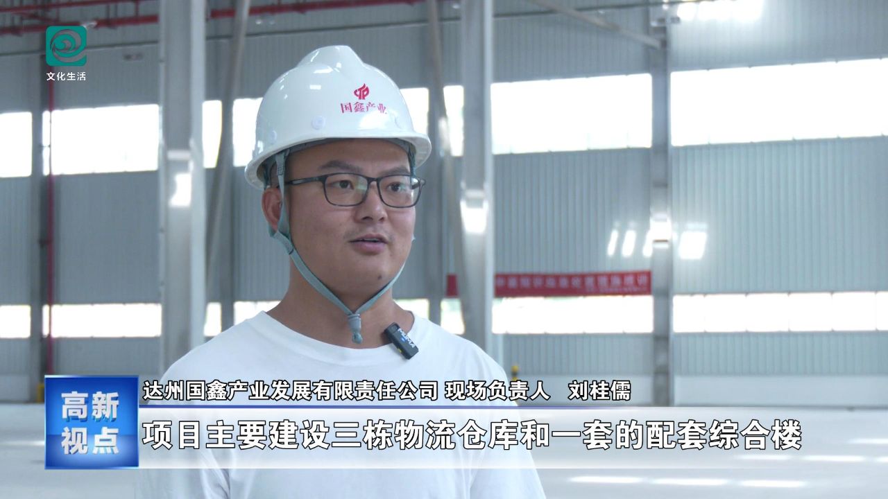 达州国鑫产业发展有限责任公司 现场负责人 刘桂儒:项目主要建设三栋物流仓库和一栋配套综合楼。目前,B02单层物流仓库已基本完成,正在进行收尾作业;B01单层物流仓库钢结构已完成70%;A01双首层物流仓库已完成混凝土主体结构,正进入钢结构施工阶段,A02配套用房主体结构已经完成,正进行砌体结构施工。