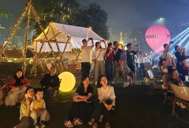 10月1日晚,暮色初临,达州高新区梨树坪湿地公园早已人潮涌动,处处洋溢着热烈的节日气氛。孩子们骑在家长肩头翘首以盼,年轻人手中挥舞的国旗映红了笑脸,一场期盼已久的视听盛宴即将在此上演。