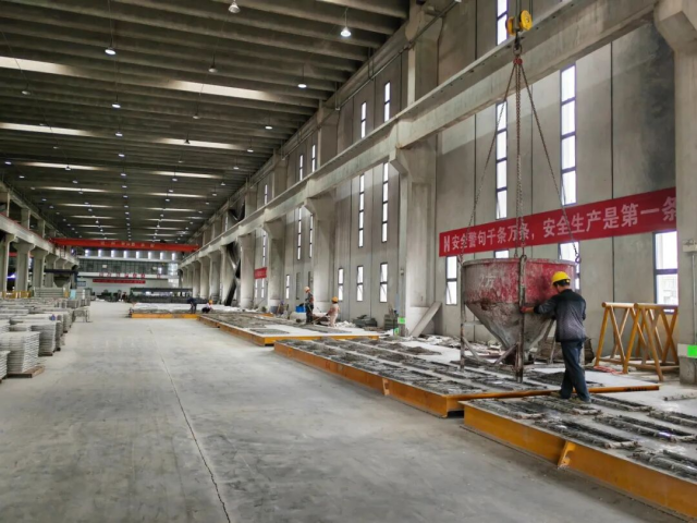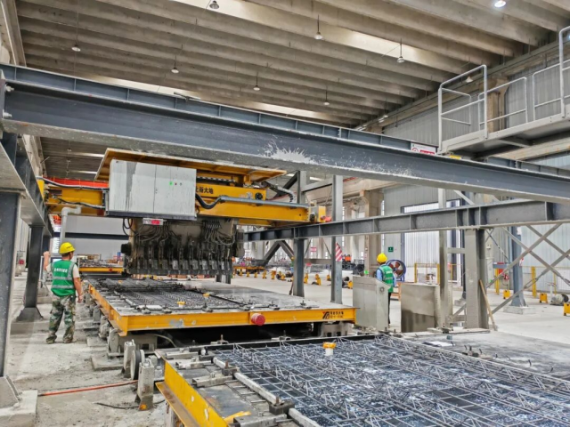 该公司生产基地占地232亩,一期工程于2021年11月建成投产,建设期间装配率高达97%。目前已建成叠合板、楼梯、柔性、钢筋、市政构件等5条专业化生产线,年产能达12万立方米,可同时满足60个大型项目的构件需求。