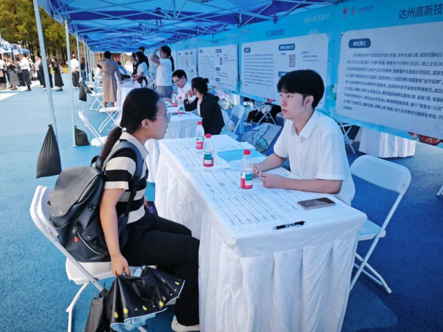 推介会现场,高新区展位人气火爆,数十位硕士毕业生及多位博士生驻足咨询,围绕达州的发展机遇、人才政策支持及个人职业规划等话题,与工作人员展开深度一对一交流,现场互动热烈。