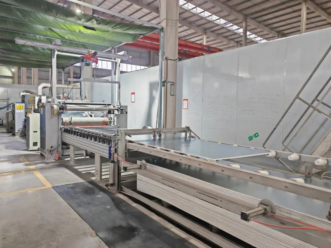 四川中皓镁纤新材料科技有限公司生产车间内,工人们操作设备有序作业。经过覆膜、切割等工序后,一批镁质玄纤复合防火风管不断下线。