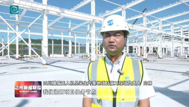 四川腾盾无人机总装生产基地项目施工现场负责人向林:我们紧盯项目任务节点,优化施工组织方案,加大投入,确保施工安全、高效推进。目前,项目整体完成度60%。