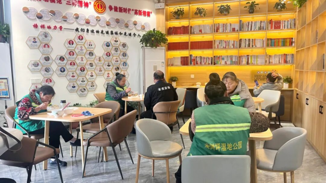 走进达州高新区梨树坪户外劳动者爱心驿站,桌椅、饮水机、空调、冰箱、书籍等设施配备齐全。几名环卫工人正使用驿站提供的冰箱、微波炉、电饭煲等设备热饭、煮菜,享受难得的工间休憩时光。