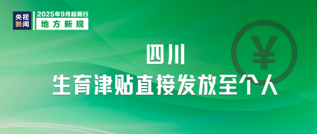 9月1日起,四川省对符合生育津贴申领条件的参保职工,由职工或其委托人申请,医保经办机构将生育津贴按程序直接发放至职工本人。