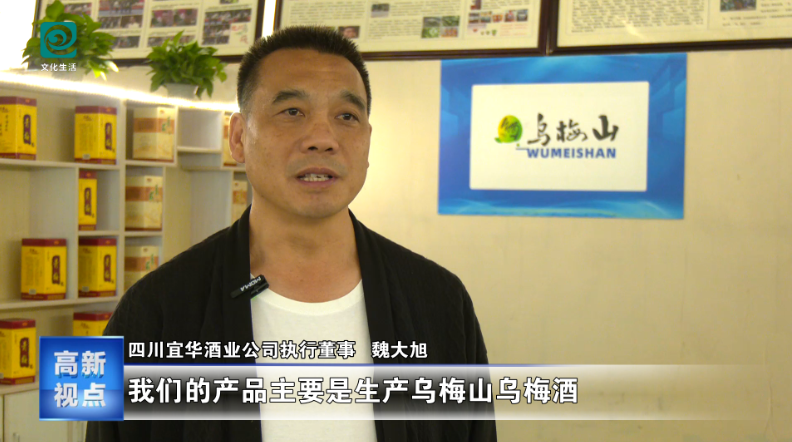 四川宜华酒业公司执行董事魏大旭:我们主要是生产乌梅山乌梅酒,主要销往成都、重庆、山东、上海一带,每年要销(售)1200吨左右,产值达到2000多万元。