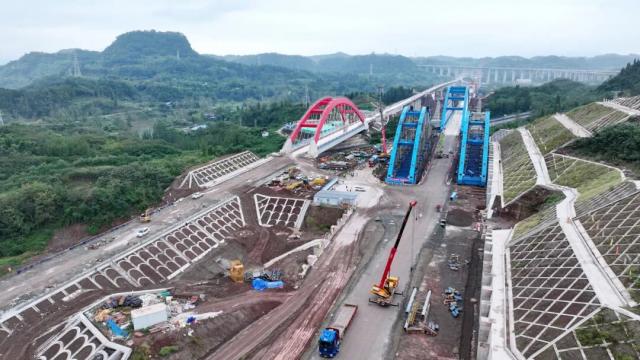 连日来,达州高新区各重点项目施工单位抢抓秋季施工“黄金期”,铆足干劲、加压奋进,全力推进项目建设。位于达州高新区境内的全国首座高铁大跨度网状吊杆系杆拱桥——西渝高铁康渝段跨营达高速公路大桥进度条持续加载。目前,大桥总体建设已完成总工程量的80%以上,主线桥面铺装已全部完成,左右两线梁段拼装分别完成85%和75%。