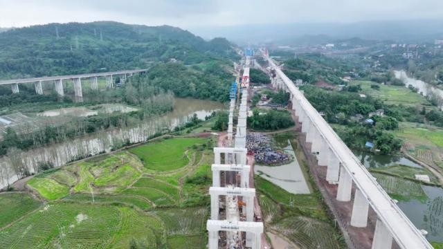 中铁四局西渝高铁康渝段站前七标项目现场施工人员张龙介绍,目前,主线桥面铺装已全部完成。左右两线梁段拼装分别完成85%和75%,按照当前进度,预计11月底可启动顶推作业。后续,将抢抓晴好天气,动态增派人员和设备,科学组织、协同作业,在严守安全底线的前提下,全力保障项目有序、高效推进。
