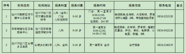 提供儿科诊疗服务的基层医疗机构名单