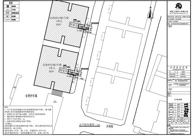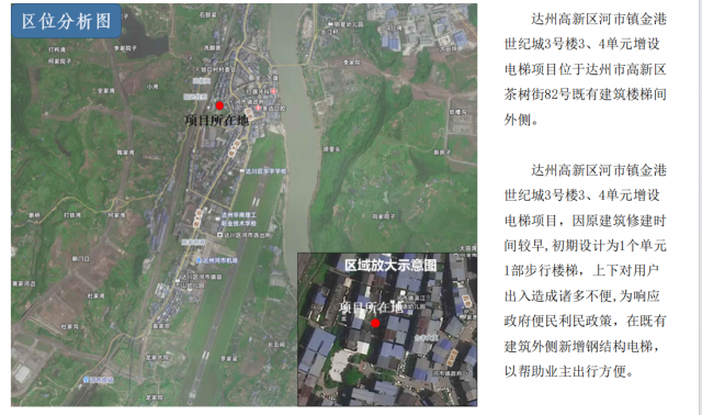 附图:达州高新区河市镇金港世纪城3号楼3、4单元增设电梯规划设计方案的总平面图
