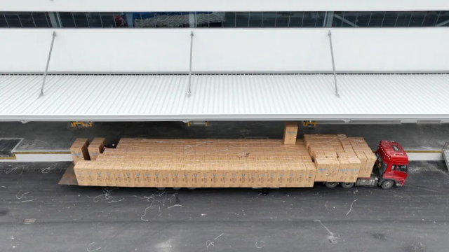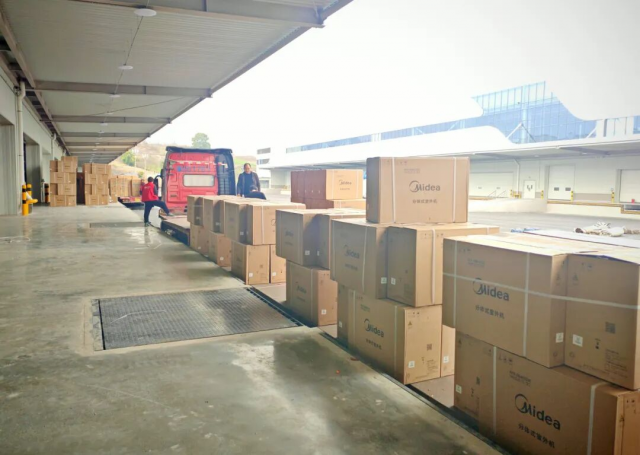随着项目一期B区建成投用,已有电商企业抢先体验,启动仓储备货。在B01仓库,工作人员正有序进行商品卸载、堆放,仓库里已有不少热水器、冰箱、空调等家电。