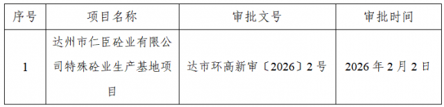 根据建设项目环境影响评价审批程序的有关规定,经审查,2026年2月2日我局对1个环境影响评价文件作出审批决定。现将作出审批决定情况予以公告,公告期限:2026年2月2日-11日(7个工作日)。