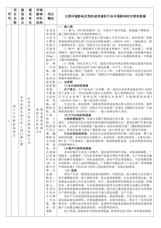 根据建设项目环境影响评价审批程序有关规定,经审议,我局拟对《诚立牛仔裤洗染项目》作出批复决定。为保证此次审议工作的严肃性和公正性,现将建设项目环境影响评价报告的基本情况予以公示。公示期限:2026年2月11日—2月25日(共5个工作日)。