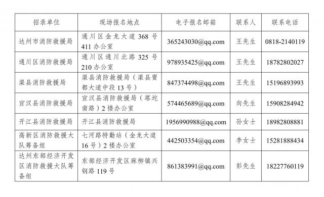 ①《达州市消防救援局政府专职消防员报名表》(附件4)一式两份;